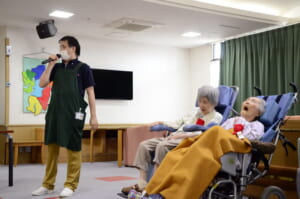 カラオケも披露させていただき、利用者、職員ともに楽しい雰囲気のもと、盛大にお祝いをさせていただきます!
